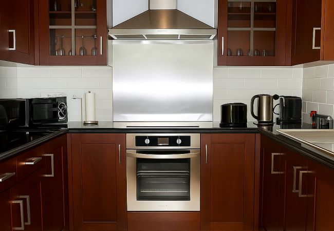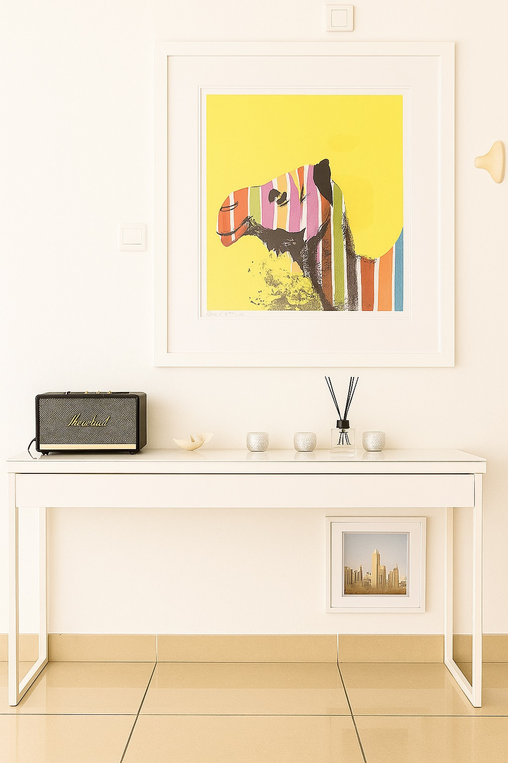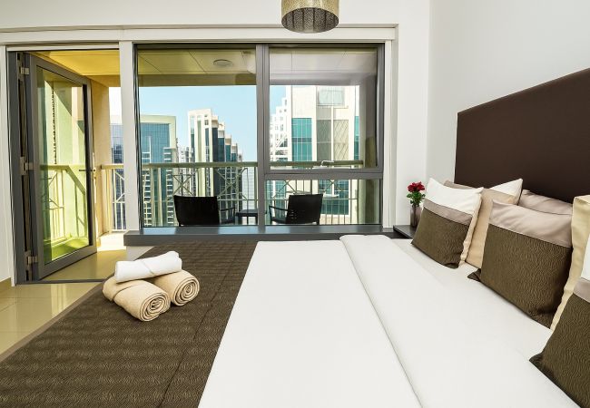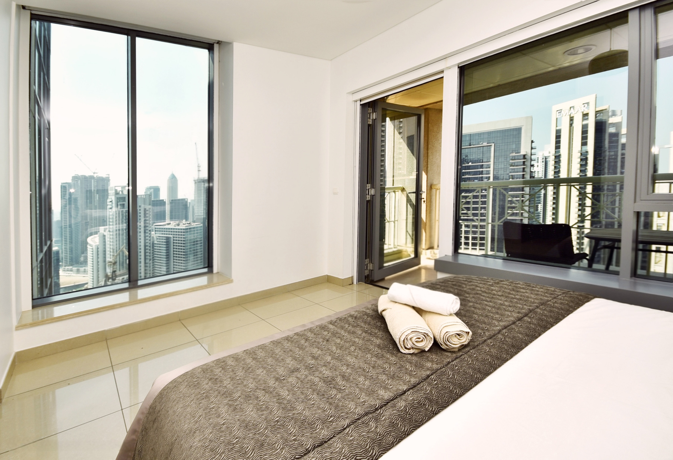 This elegant apartment on the 43rd floor offers one of the most spectacular views in the city – especially at night, when the skyline glows in a thousand lights and the Burj Khalifa sparkles right before your eyes.