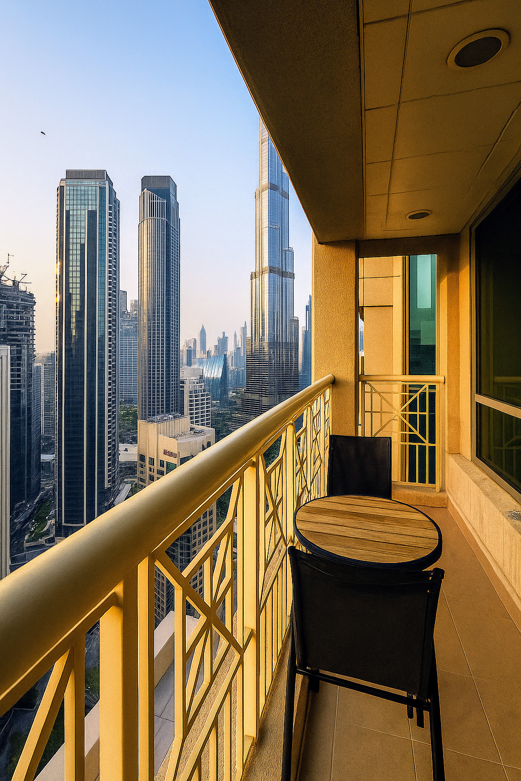 Burj Khalifa, Dubai Mall, the Fountain Show, the Opera, and numerous restaurants and cafés are all within a 10–15 minute walk.