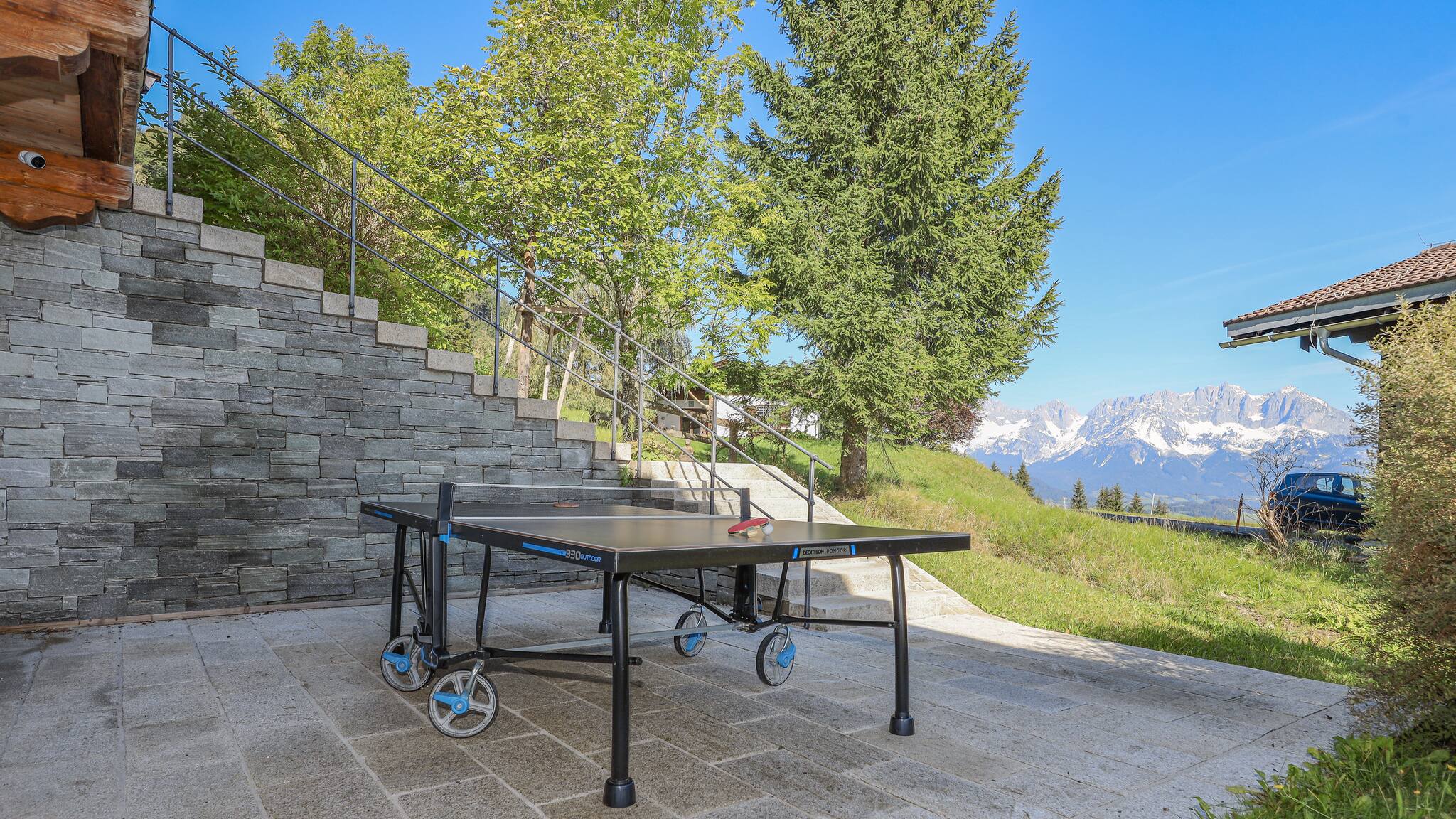 On the spacious terrace, you’ll find an outdoor jacuzzi, sun loungers, a grill, and a ping-pong table – ideal for laid-back afternoons with mountain views.