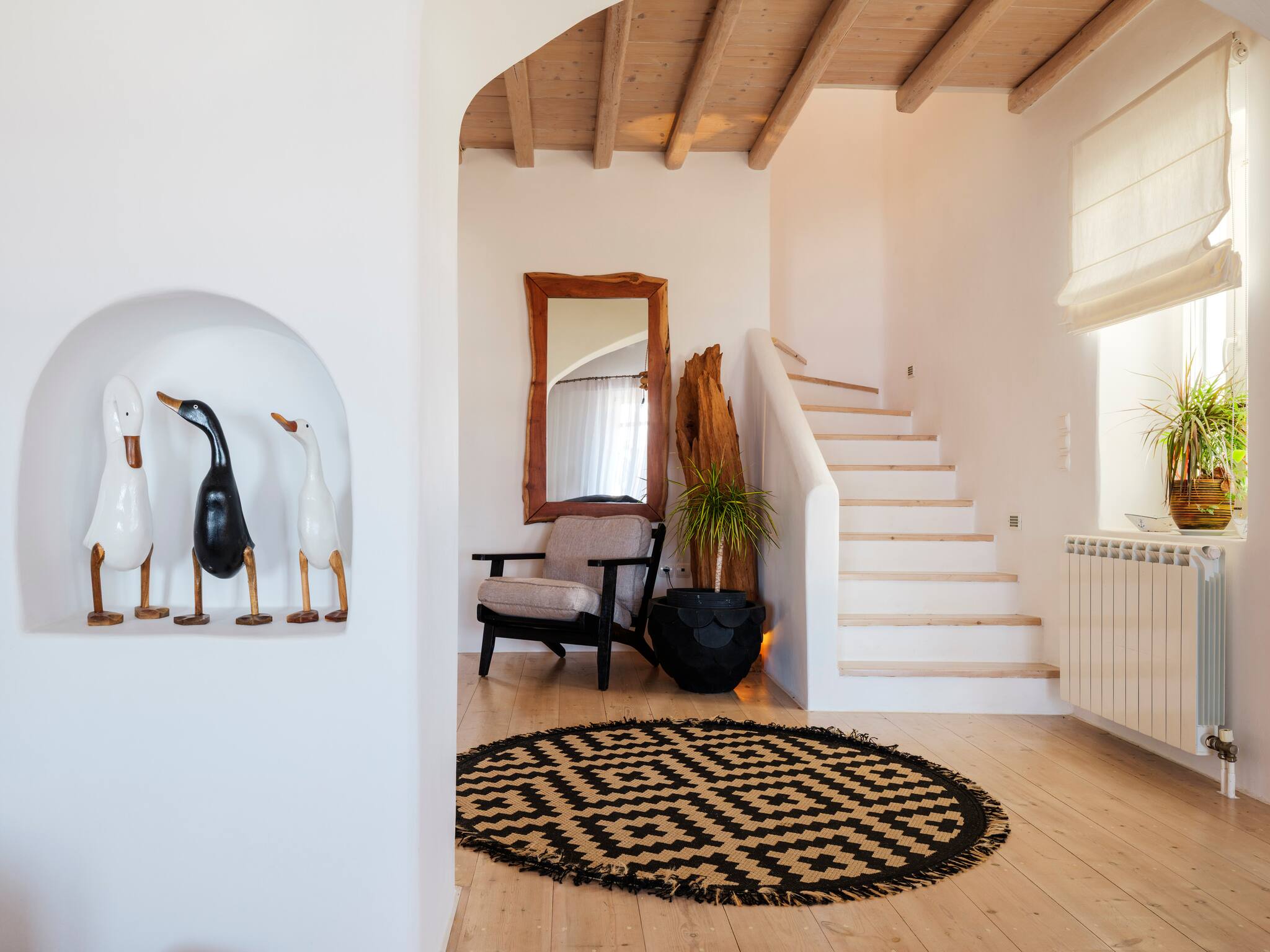 Bright interiors, natural materials, and open transitions create a feeling of spaciousness and calm.