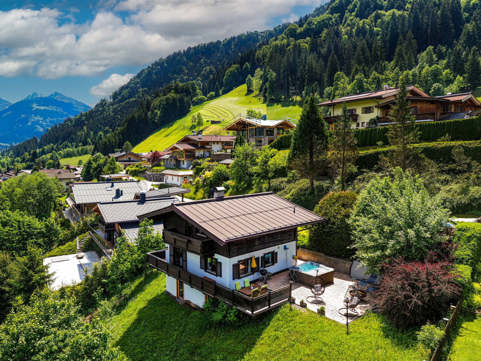 Das Chalet liegt ruhig am Ortsrand von Kitzbühel in einer gepflegten Wohnanlage.