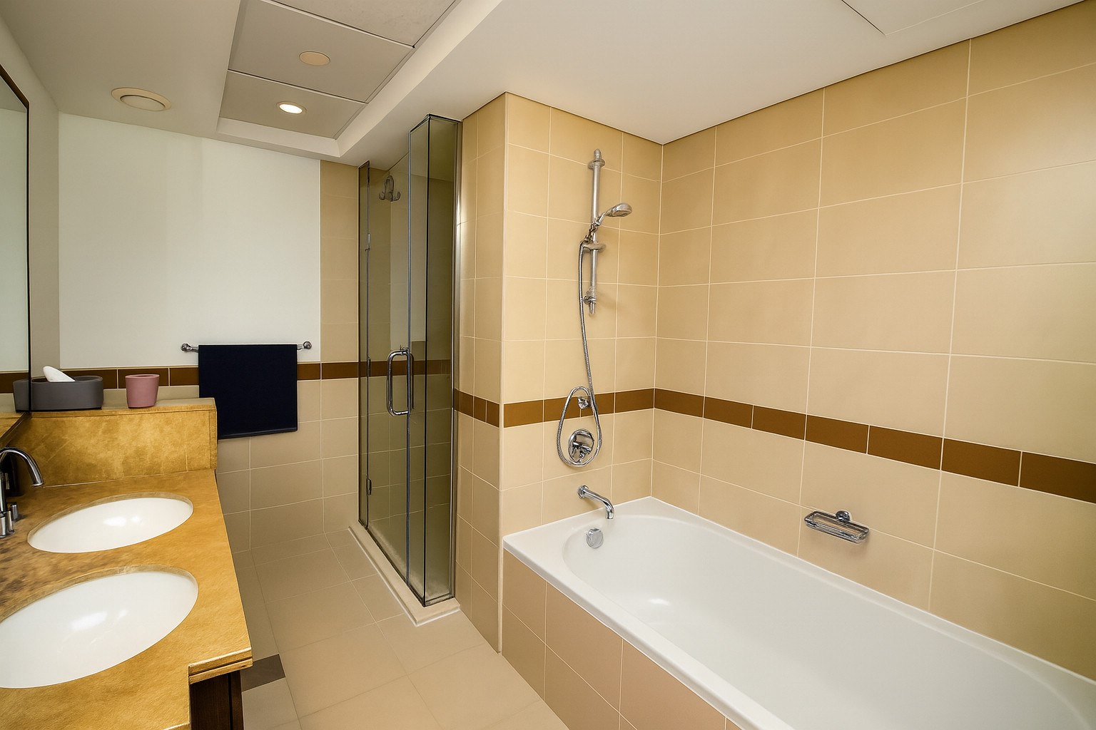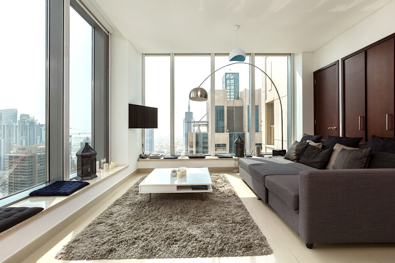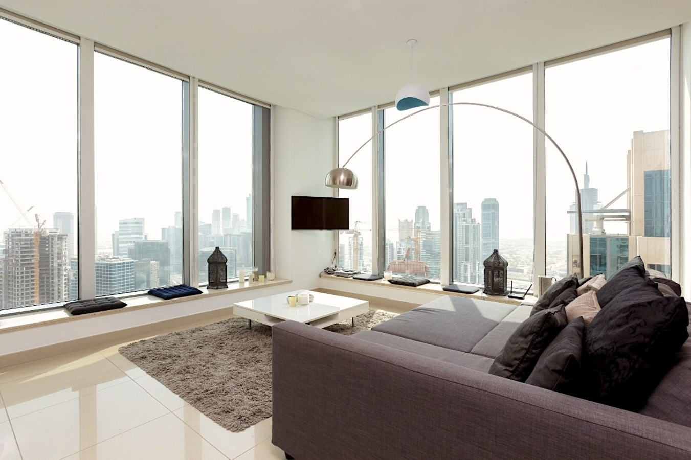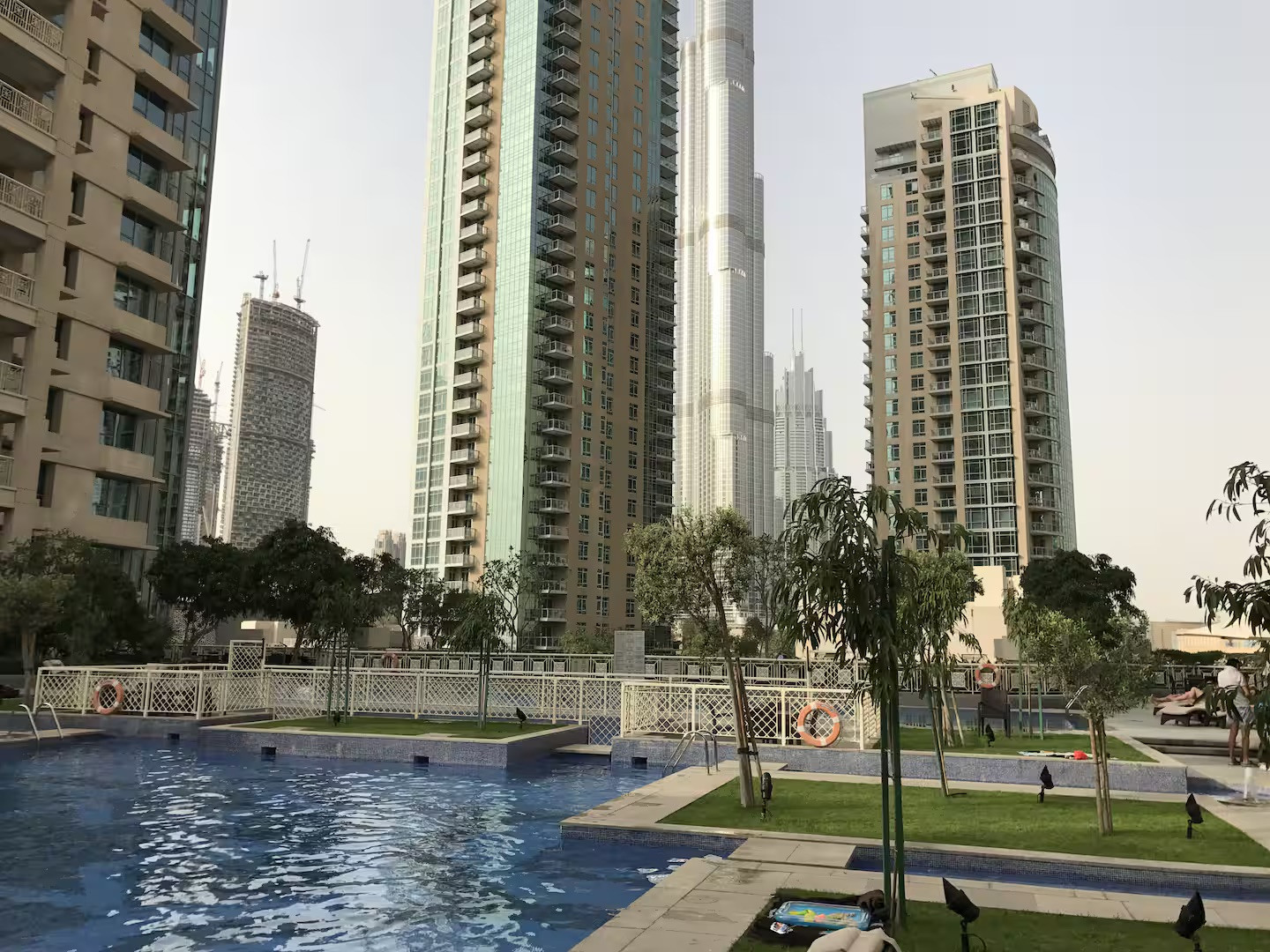 Diese stilvolle Wohnung im 43. Stock bietet einen der spektakulärsten Ausblicke der Stadt – besonders bei Nacht, wenn die Skyline in tausend Lichtern erstrahlt und der Burj Khalifa wie auf der Hand funkelt.