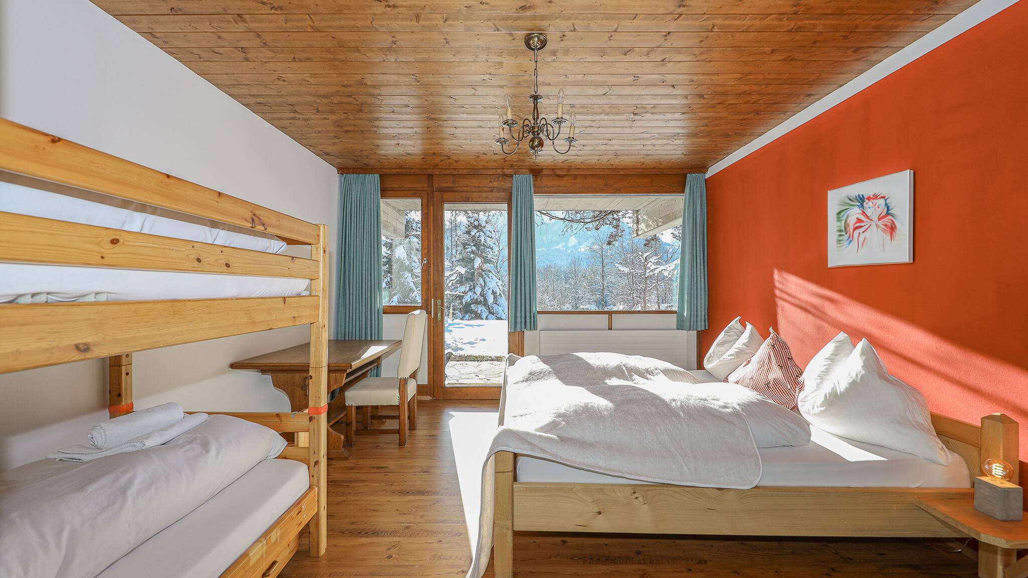 Ein Familienzimmer mit einem weiteren Kingsize-Bett (180 × 200 cm) und einem Etagenbett – ideal für Familien oder kleine Gruppen