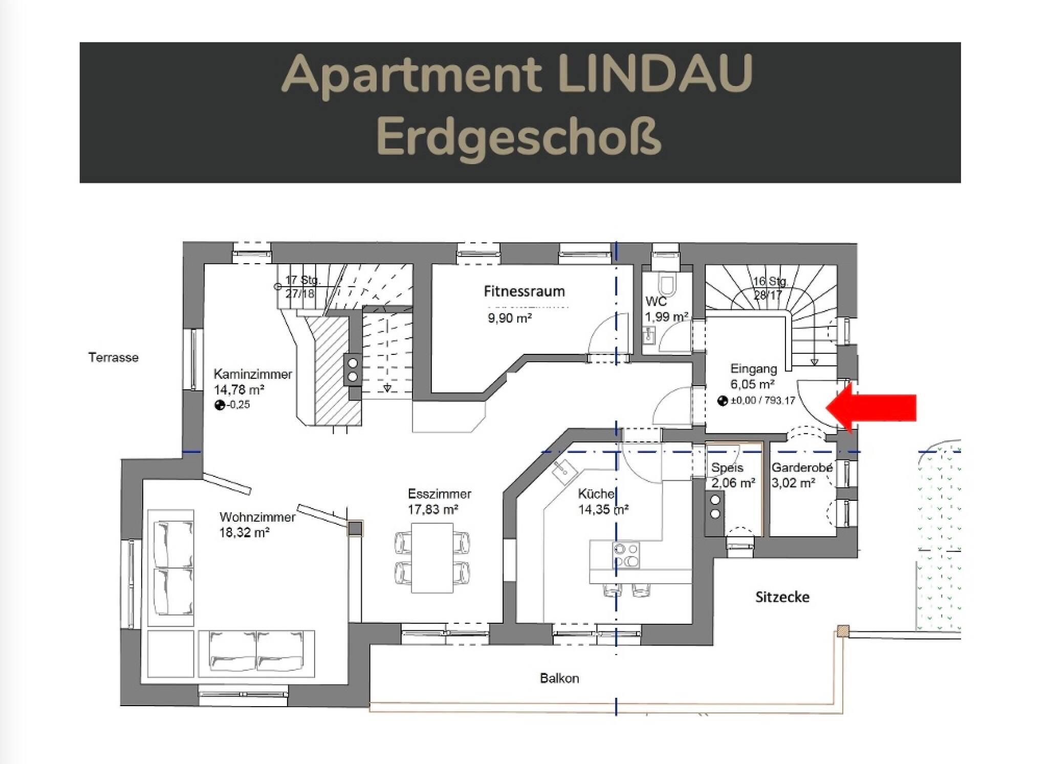 Das hier angebotene Apartment Henne ist mit etwa 200 m² das größte im Chalet.