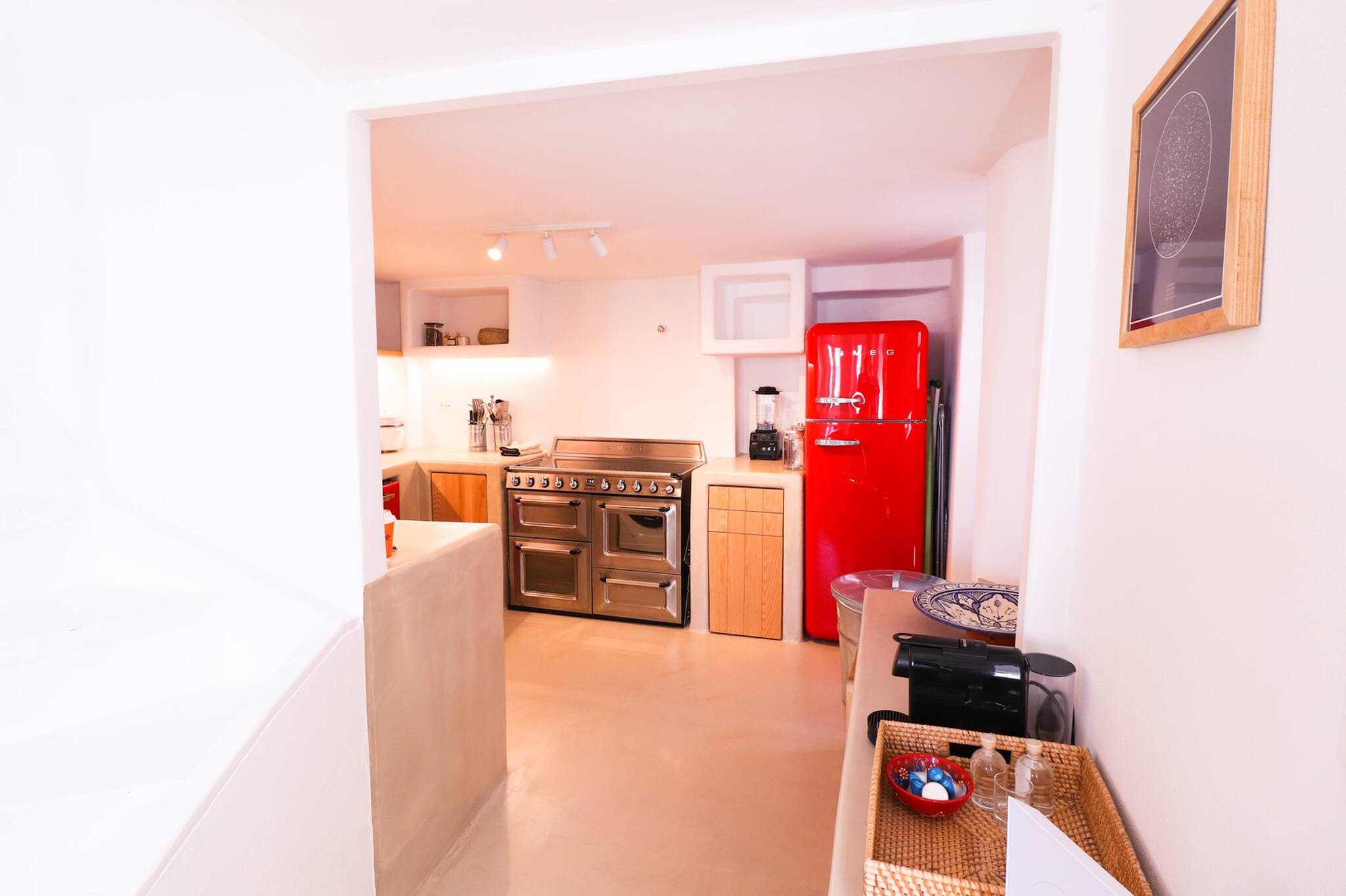 Mit seiner zentralen Lage im Herzen von Mykonos-Stadt bietet das Apartment den idealen Ausgangspunkt, um die Insel in all ihren Facetten zu entdecken. Restaurants und Cafés liegen nur einen kurzen Spaziergang entfernt – von traditionellen griechischen Tavernen bis hin zu internationaler Gourmetküche ist alles dabei. Einkaufsliebhaber kommen in der Matogianni-Straße mit ihren Boutiquen, Galerien und Souvenirshops voll auf ihre Kosten. Der Alte Hafen von Mykonos ist bequem zu Fuß erreichbar und dient als Ausgangspunkt für Bootsausflüge und Insel-Hopping. Auch der Flughafen Mykonos (JMK) liegt in der Nähe und ist leicht per Taxi erreichbar. Dank dieser Toplage kannst du das Beste von Mykonos genießen – kulinarische Highlights, lokale Kultur, pulsierendes Nachtleben und traumhafte Ausflüge.